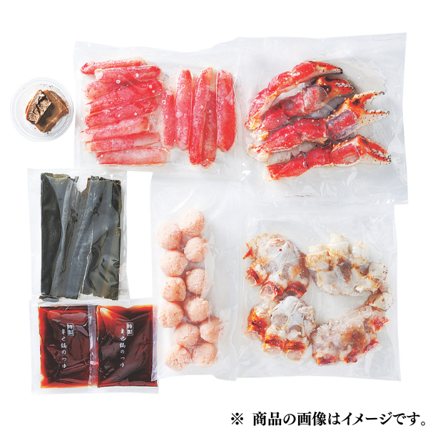 | 内容量 | 生冷タラバガニカット:450g 生冷ズワイガニカット:200g かに入り団子:180g かにみそ:20g タレ:50g×2 だし昆布:15g |