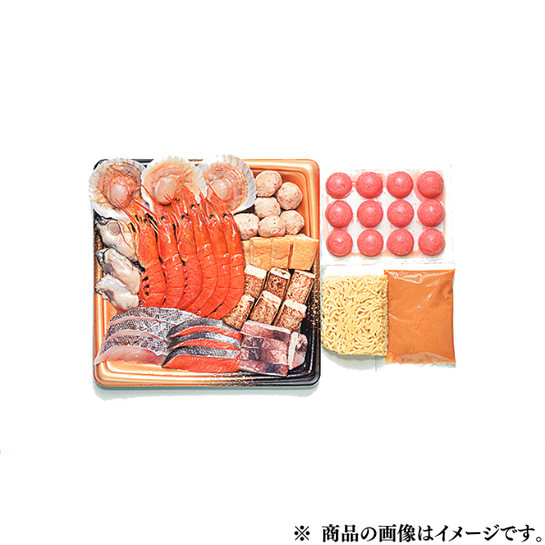 | 内容量 | ほたて貝:3枚 赤エビ:6尾 辛子明太子:10g×12 かにつみれ:6個 焼豆腐:6個 牡蠣:3個 いか:6切 秋鮭:20g×3切 助宗鱈:20g×3切 油揚げ:6個 ごま寄せ鍋たれ:200g ラーメン:200g |